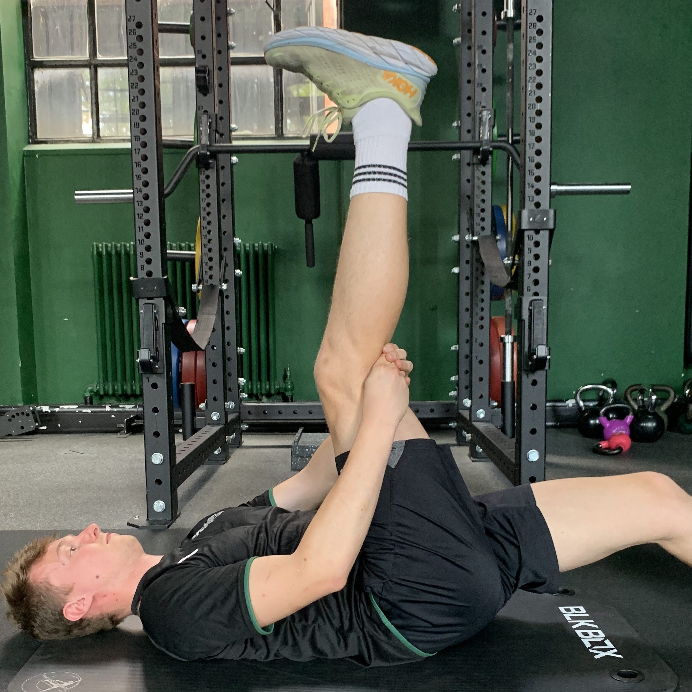 Lying Hamstring Stretch – Lay down on your back and lift one leg off the ground. Place your hands around the back of your knee and pull the leg towards you while keeping your legs straight.